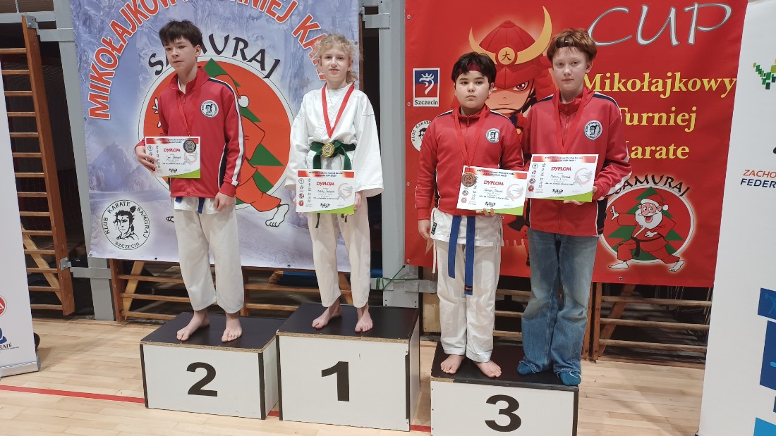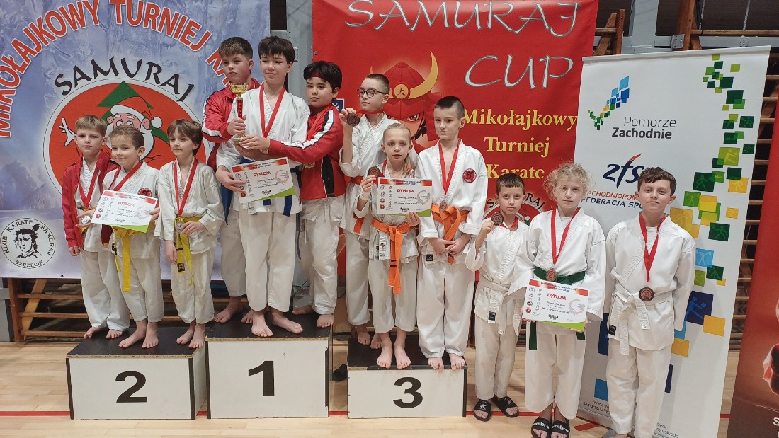 Najdzielniejsi karatecy z Kostrzyna nad Odrą, Mikołajki obchodzili na sportowo, biorąc udział w XXVII Mikołajkowym Turnieju Karate "Samuruaj Cup" w Szczecinie. W przemiłej atmosferze okraszonej prezentami oraz profesjonalnej organizacji zawodów, nasi mali karatecy zdobyli łącznie 14 medali, w poniższych kategoriach: