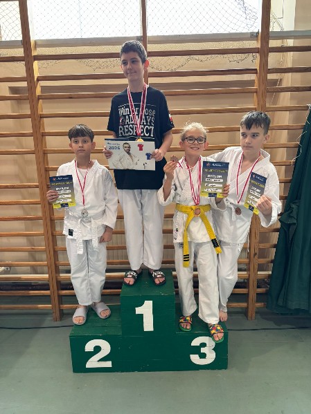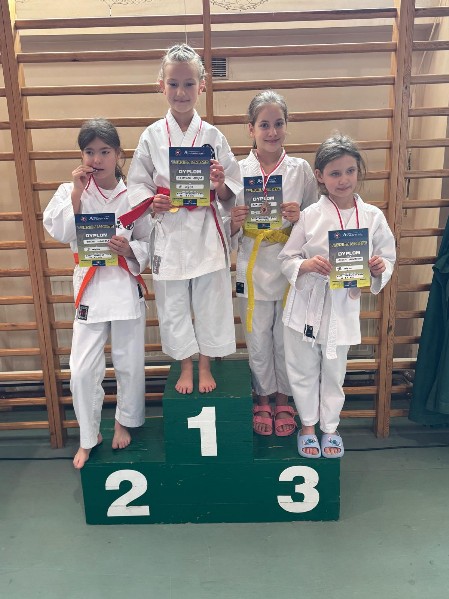 Ponadto, nasi mali karatecy sprawdzili swoje umiejętności, w niezwykle wymagającym, w szybkościowym torze sprawnościowym, zajmując następujące mijeca w swoich kategoriach wiekowych: